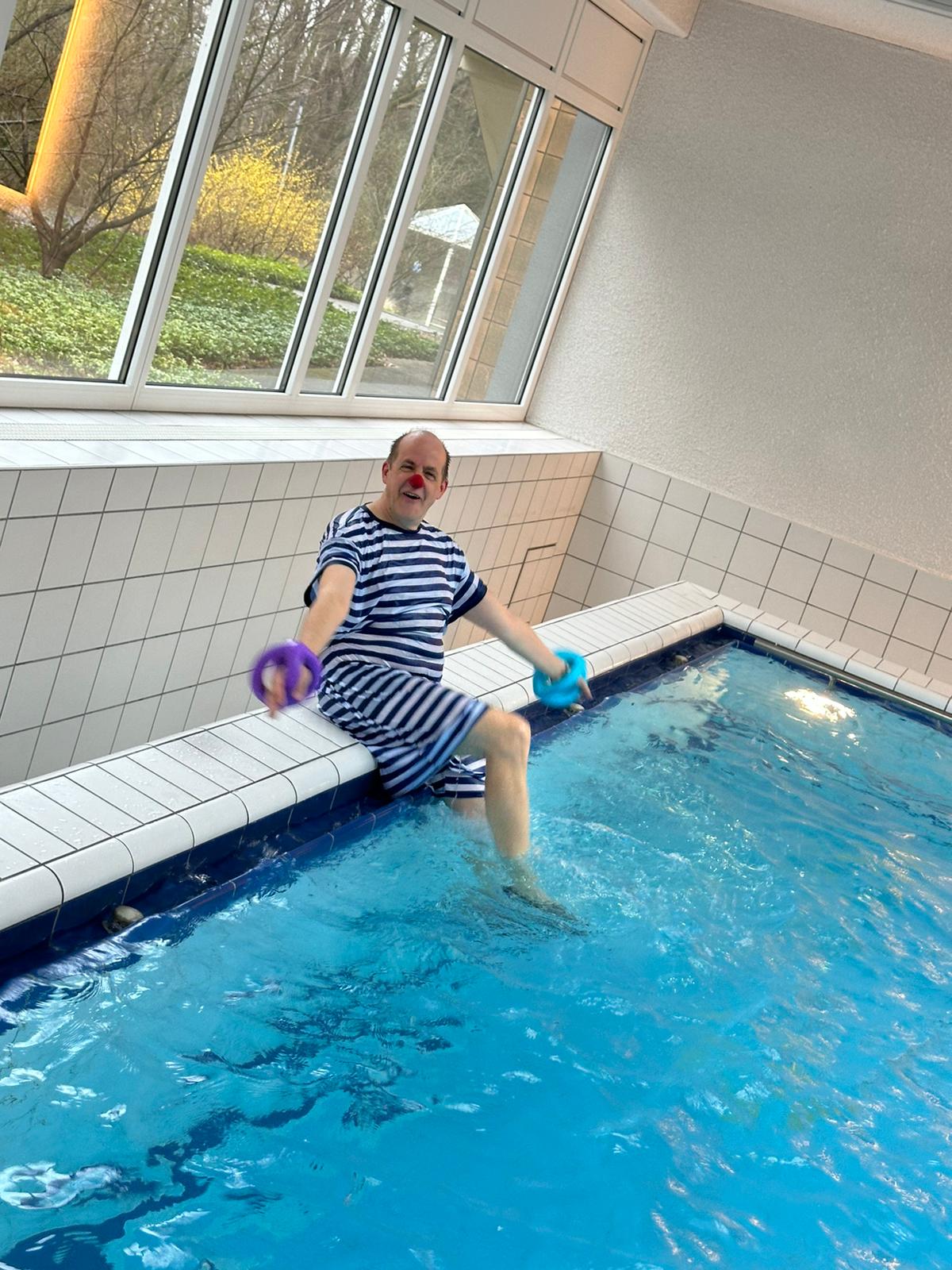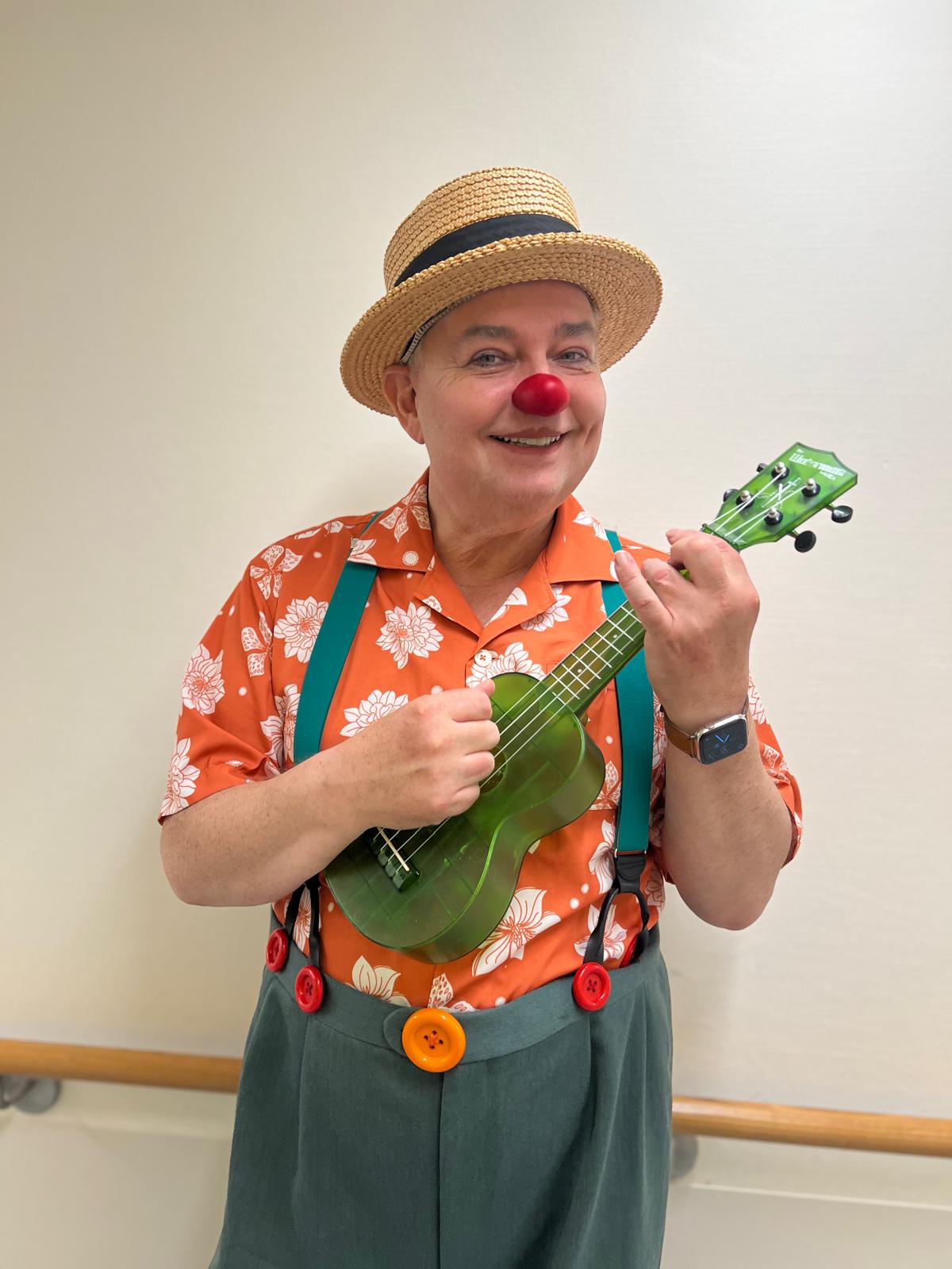 Seitdem auf dem Weg zum Klinikclown mit ersten Einsätzen in Hamburg versucht er hartnäckig auf der Ukulele zu spielen und singt gerne meist ein wenig zu laut.